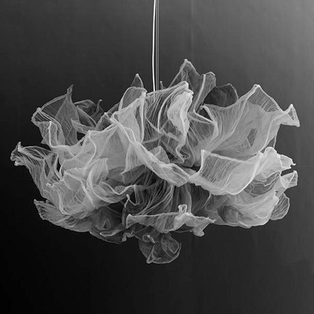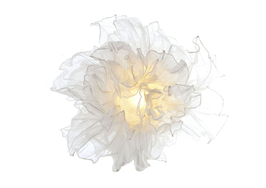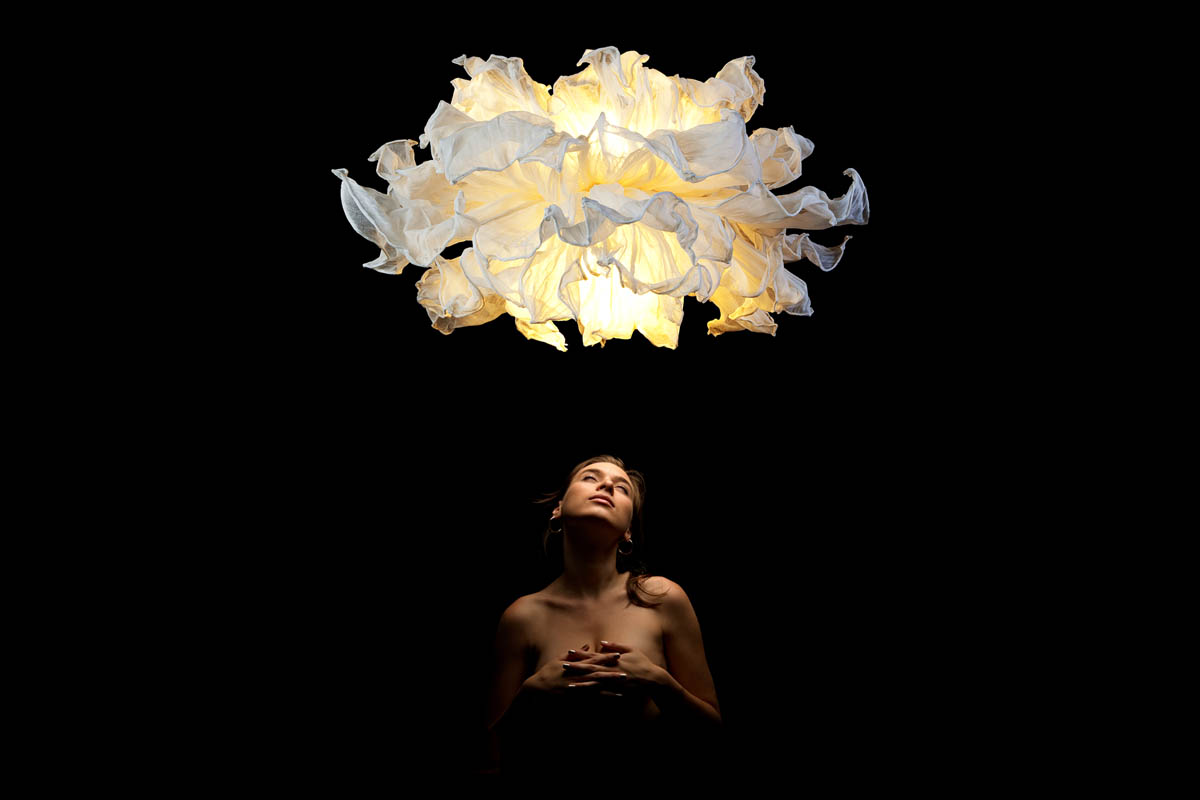 I found a photo of a flamenco girl throwing her dress all around with great power and expression. This photo inspired me to make a light with similar drama and expression to spice up our modernistic world. To achieve this theatre and energy we had to develop new materials. Through an intricate process of working on the materials, we created petals made of fabric that we could mould in any shape, diffused the light and defied gravity. This light wants to dance in freedom, so give her space to work her gipsy magic.